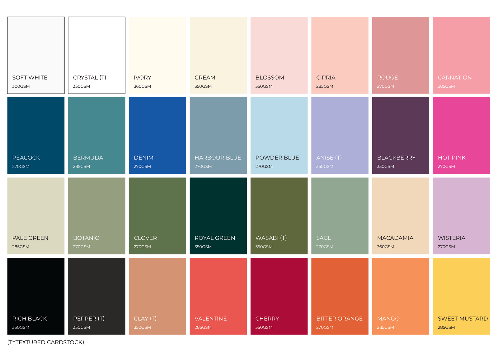 PREMIUM COLOURED CARDSTOCK - COLOUR CHART