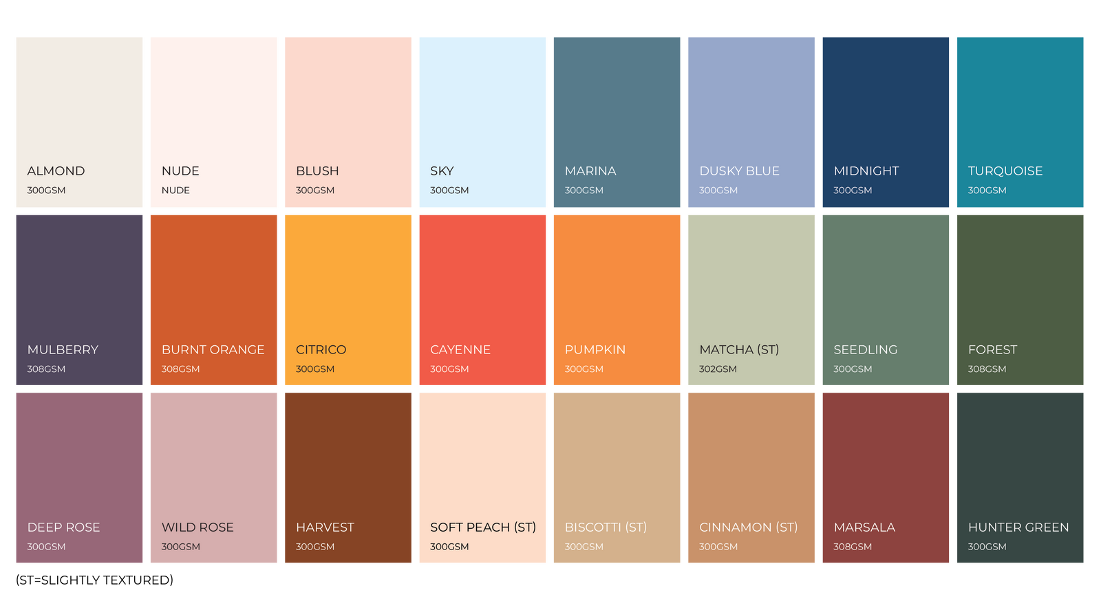 Please get in touch for a custom quote for any of the below cardstock colours.