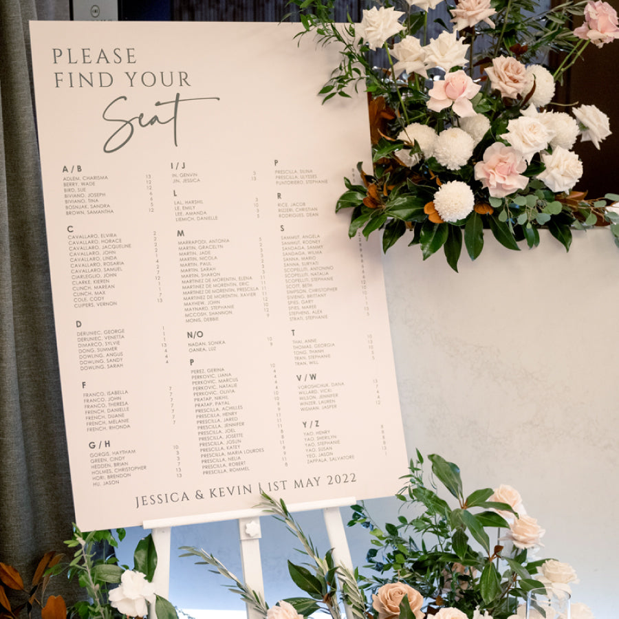Guests are listed under their first or surname letter. Alphabetical charts are suited for any event, however are a must for events with a large number of guests.